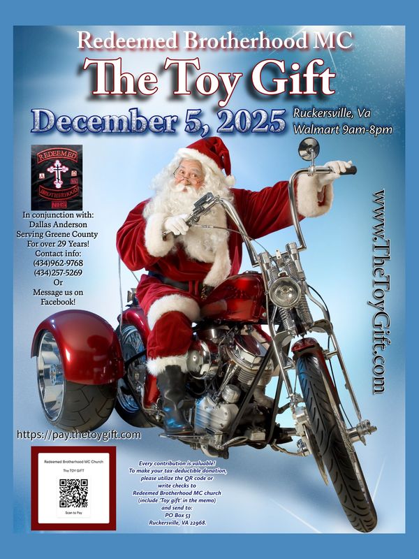 Our 2024 fundraising program: The Toy Gift has begun! We are currently accepting monetary donations as well as toys and clothing at the Ruckersville, VA Walmart location.